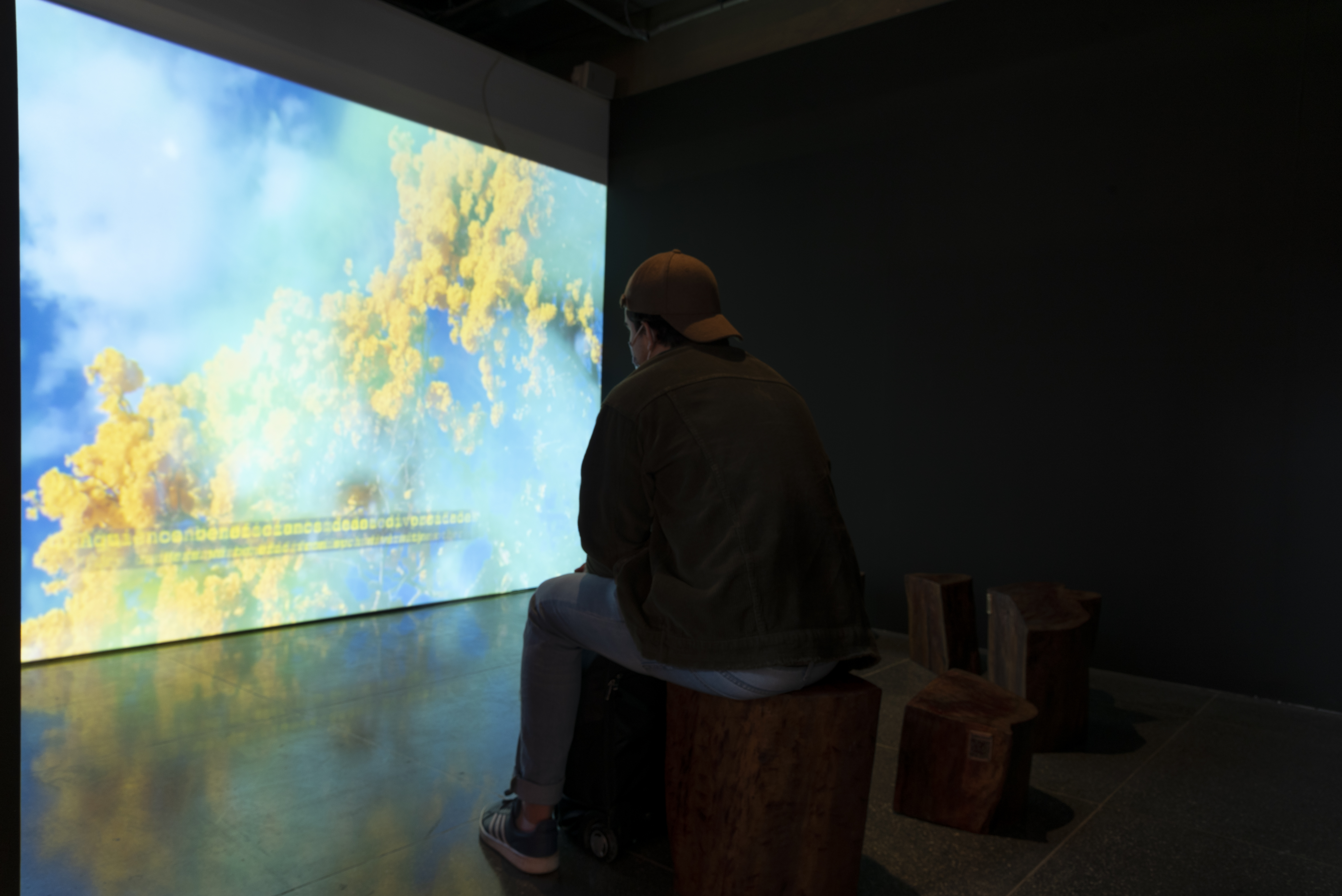 The exchange happens between an eucalyptus globulus and an ipê tree. The eucalyptus tells its displacement from the Australian landscape to the Chilean central valley, employed as a nature-based solution co-opted by a mining company to